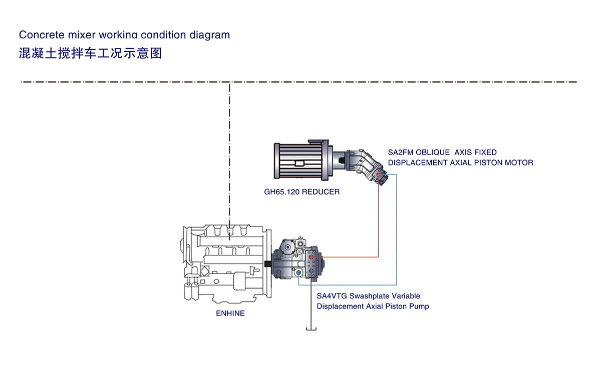 1、SA4VTG系列柱塞泵通過(guò)發(fā)動(dòng)機(jī)驅(qū)動(dòng),將機(jī)械能轉(zhuǎn)換為液壓能 傳給SA2FM定量馬達(dá),馬達(dá)再驅(qū)動(dòng)減速機(jī),由減速機(jī)驅(qū)動(dòng)攪拌裝置,對(duì)混凝土進(jìn)行攪拌。